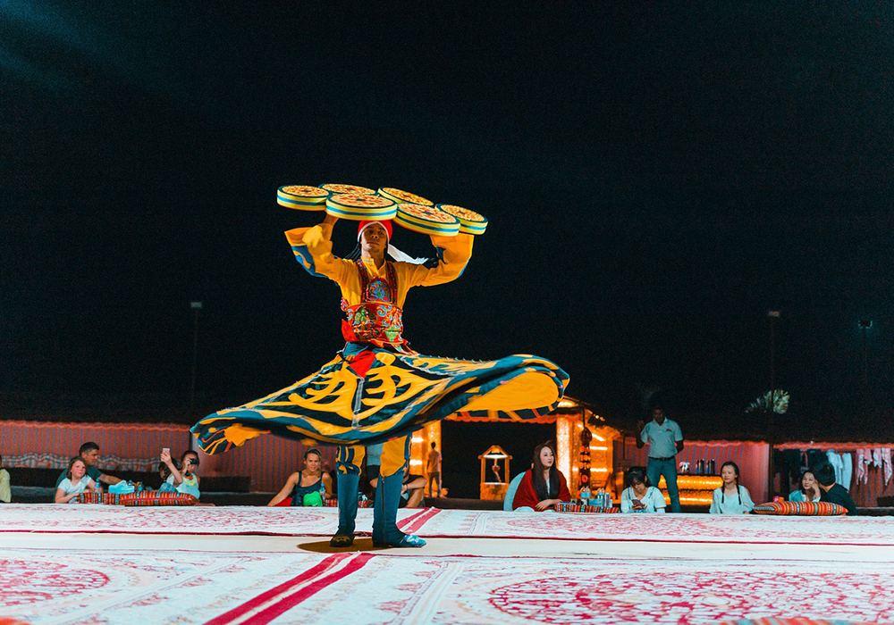 Upon Arrival in Dubai, you will be escorted to your hotel. The hotel check in times are 2 pm. In the evening around 7 pm, we take you to experience a dinner cruise on a traditional wooden dhow, a type of Arabian sailing vessel. As it sails along the Dubai Marina, from the upper deck you get to witness breathtaking views of the city’s modern skyline, including iconic landmarks such as the Marina Mall, Jumeirah Beach Residence (JBR), and the many skyscrapers lining the marina. All this with dinner and live entertainment makes a perfect start to your trip to Dubai.
